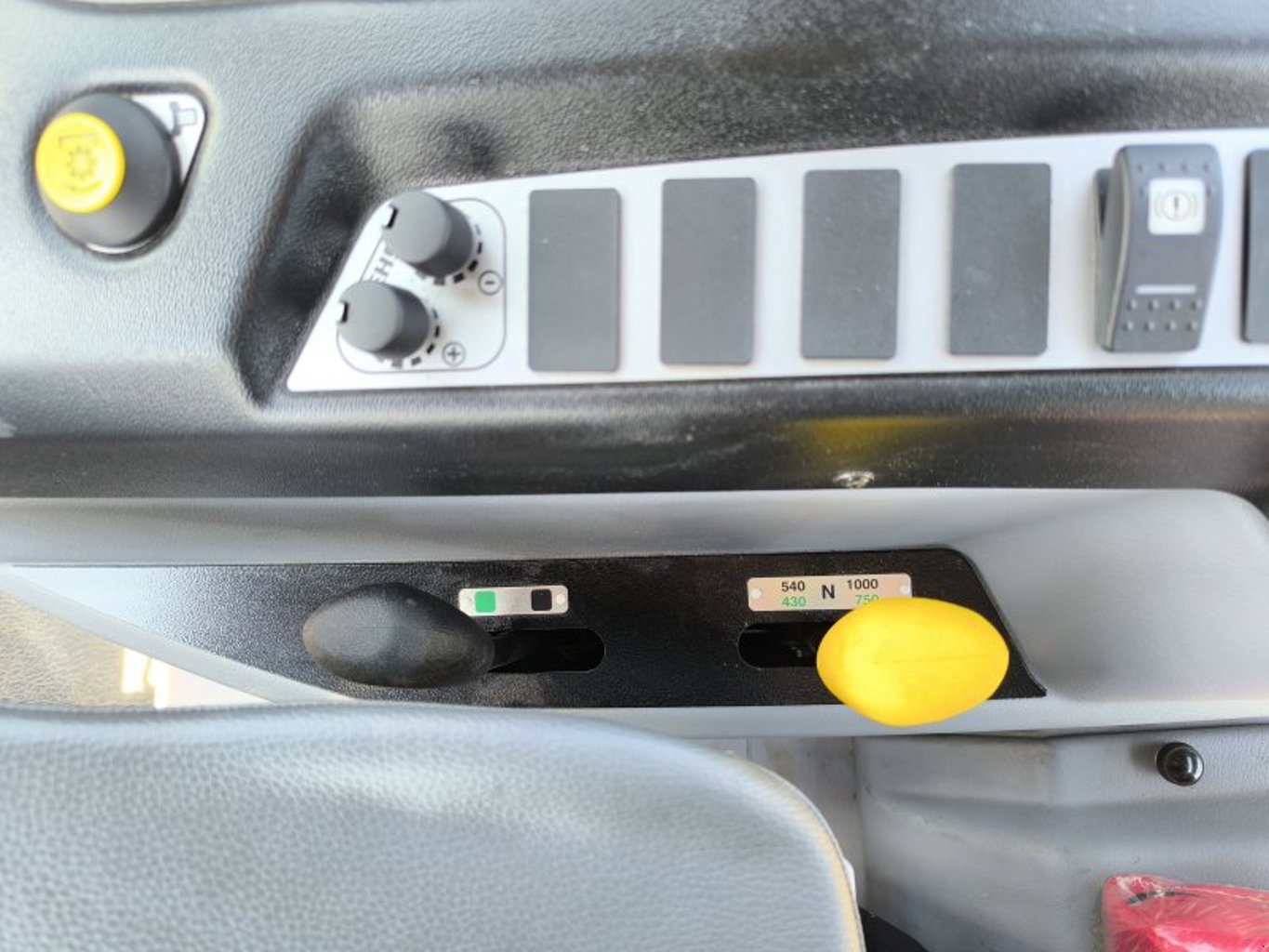 Die vorhandene Kabine bietet dem Fahrer Schutz vor Witterungseinflüssen und trägt damit zum Komfort bei längeren Arbeitseinsätzen bei. Gerade in den kühleren Monaten oder bei Regen ist dies ein Vorteil, der die Arbeitsbedingungen deutlich verbessert.