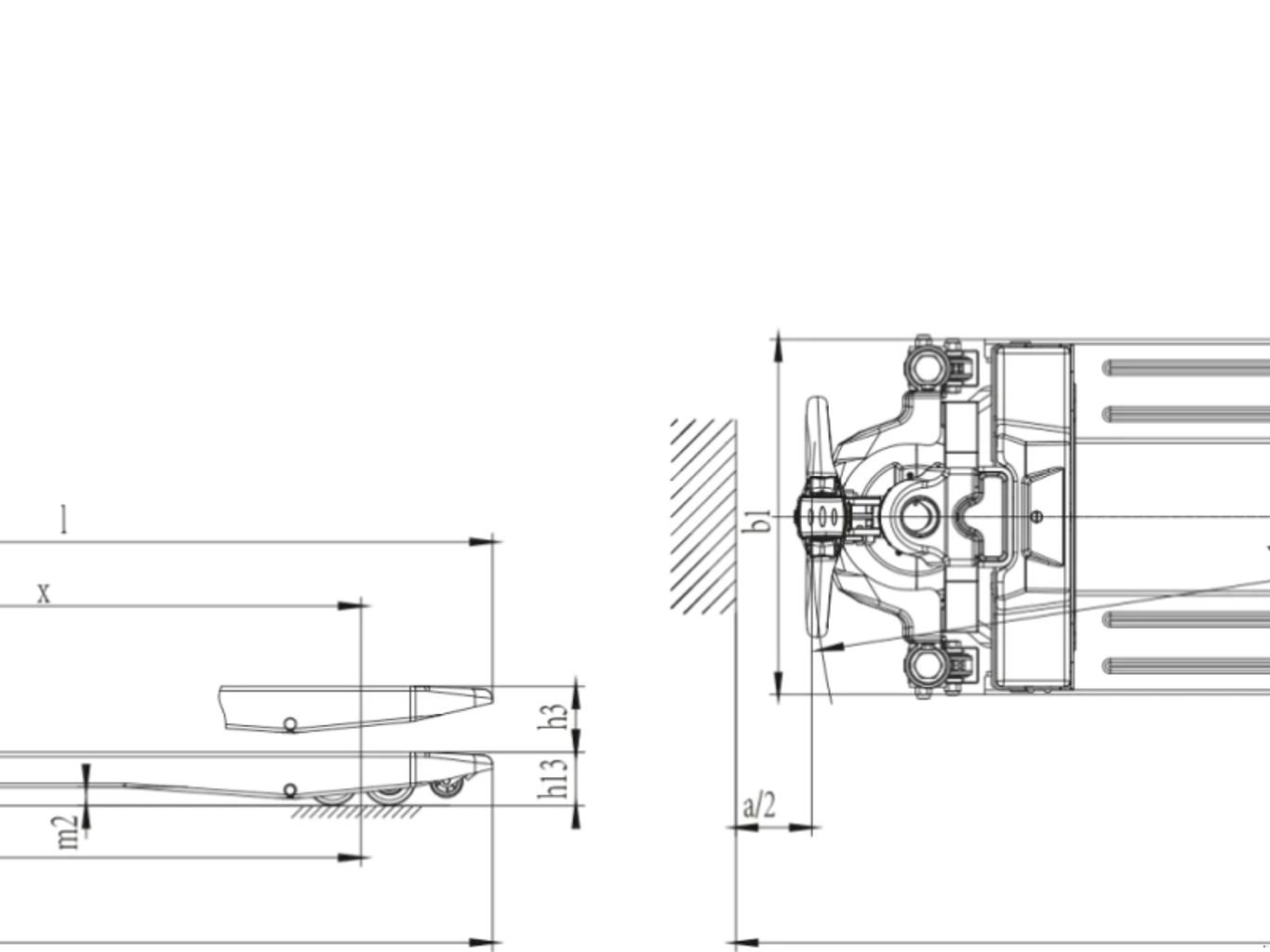 Länge bis zur Vorderkante der Gabeln: l2 = 395 mm