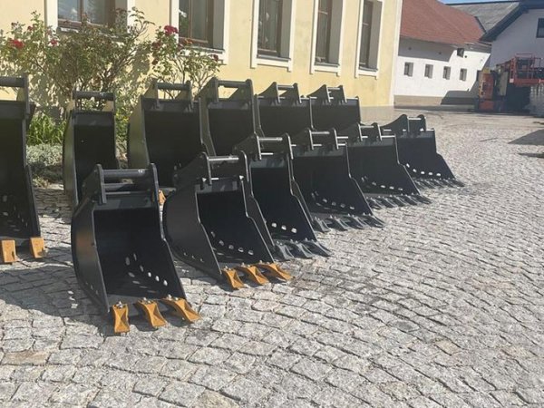 gewerblich13.09.2025- Löffelset passend zu Lehnhoff SW01/MS01 mit Symlock Aufnahme * 100cm Böschungslöffel/Schwenklöffel - 74l Volumen - 90kg * 40cm Tieflöffel mit 3 Zähnen (abschraubbar) - 46l Volumen - 38kg * 20cm Tieflöffel mit 2 Zähnen (abschraubbar) - 20l Volumen - 28kg Passend zu 1,5-2,5t Bagger