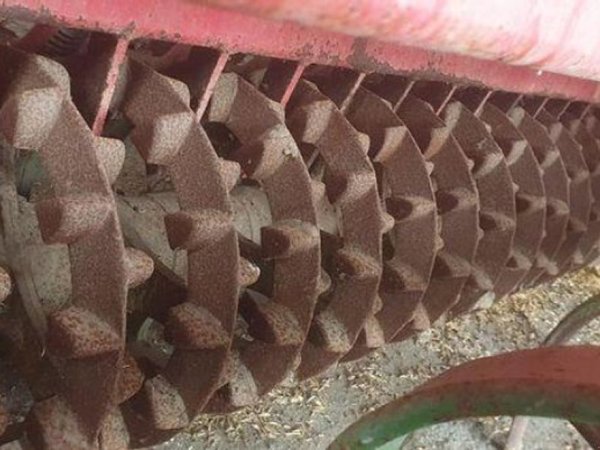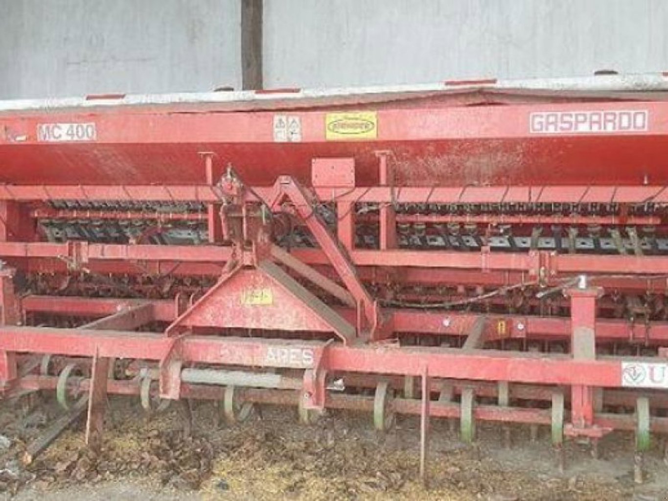Gaspardo MC400 Säkombination Technische Daten: hydraulische Spuranreißer Fahrgassenschaltung Schleppschar mit Nachlaufstriegel Befülltreppe, 12 cm Reihenabstand / 34 Schare mit Unia Ares 400 Kurzkombination: 2 reihige Garezinken höhenverstellbar 1 Crosskillwalze Aufsattelkupplung System Weiste