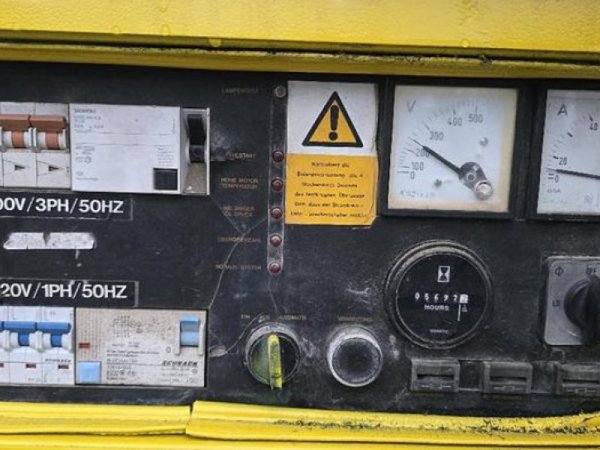 Technische Daten: - 27 kVA - 21,6 kW - 50 Hz - 3 Zylinder Perkins Motor - Betriebsstunden: 5697h - 2x 400 Volt / 16 Amp Anschlüsse - 1x 400 Volt / 32 Amp. Anschluss - 2x 230 Volt / 50 Hz Anschlüsse