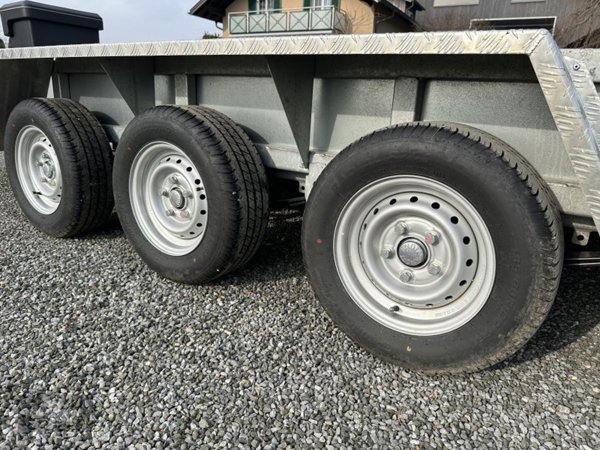 Die Tridem-Achsanordnung sorgt für eine optimale Gewichtsverteilung und Stabilität während des Transports. Mit einer zulässigen Gesamtmasse von 3,5 t und einem Eigengewicht von 2478 kg bietet dieser Anhänger eine beachtliche Nutzlast. Die Parabelfederung gewährleistet einen ruhigen Lauf und schont das Ladegut.