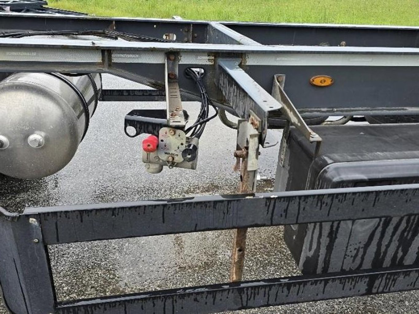 Schwarzmüller AZ S08 Container Lafette Deichselanhänger Technische Daten: * Eigengewicht: 2.600 kg * Radstand: 2.150 mm * hzGg.: 18.000 kg * hz. Achslasten [2]: 9.000 kg * Nutzlast: 15.400 kg Merkmale: * 4 Containerverschlüsse * Mulden Container Aufnahme & Verschlüsseln * Hohe Luftfederung => passend für alle BDF Höhen * inkl. Scheibenbremsen