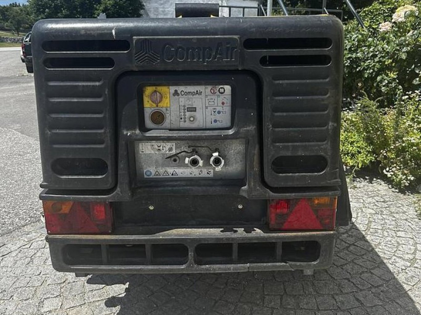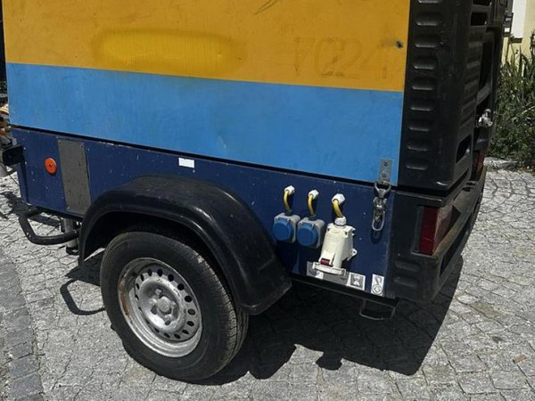 2008 CompAir C38G DLT 0407 Kompressor 7 - Anhänger Technische Daten: 13 kVA Eigengewicht: 892 KG Gesamtgewicht: 1000 KG Nutzlast: 108 KG Stützlast: 75/- KG Höchstgeschwindigkeit: 100 km/h Volumenstrom: 3,80cm³/min Betriebsdruck: max. 7 bar Motorleistung: 35,8 kW (Deichsel beschädigt)