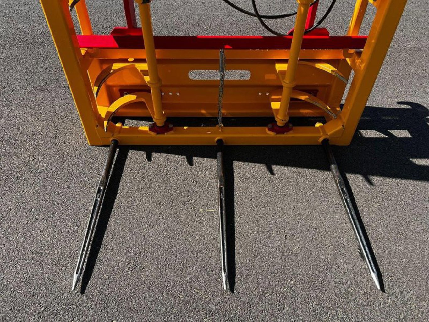 BIG BALLENGABEL MIT GREIFER TECHNISCHE DATEN TYPISCH FÜR: MHFRED34HD * Tragfähigkeit: ca. 1.800 kg * Eigengewicht: ca. 300 kg * Zinkenanzahl: 3 Hauptzinken (für besseren Halt großer Ballen) Einsatzbereich: Rund- und Quaderballen, Silage, Heu