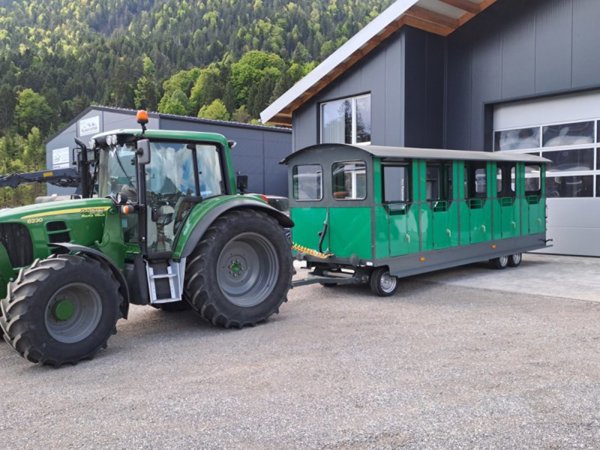 Der Nairz Waggon 42 ist ein vielseitiger Anhänger aus dem Bereich Transporttechnik, der sich hervorragend für den Einsatz als Bummelzug eignet. Dieses gebrauchte Modell aus dem Baujahr 05/2010 befindet sich in Leutasch und bietet Platz für 42 Personen. Mit seiner robusten Konstruktion und durchdachten Ausstattung ist er ideal für gemütliche Rundfahrten und Personentransporte.