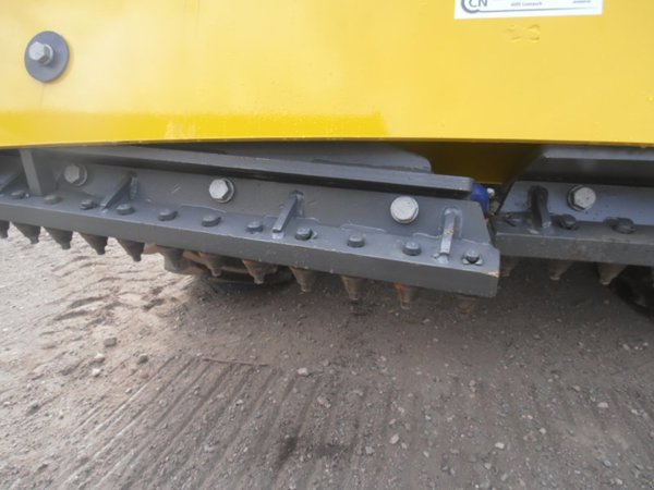Die Maschine verfügt über eine robuste Konstruktion aus Verschleißstahl, was eine lange Lebensdauer und Widerstandsfähigkeit gegen raue Einsatzbedingungen verspricht.