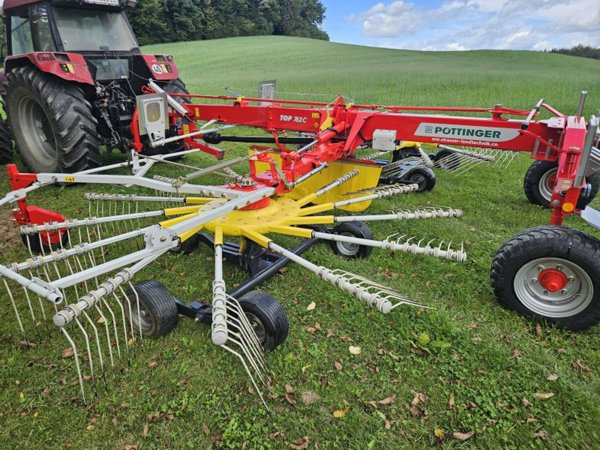 Verkaufe gepflegten Pöttinger Top 762 C, mit Multitastrad, Tandemfahrwerk und Einkreisel-Aushebung. Maschine wurde regelmäßig gewartet und abgeschmiert. Nicht die Classic Variante, sondern die C Variante mit 13 Zinkenarmen. Preis leicht verhandelbar.