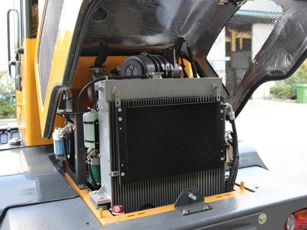 Die leicht zu öffnende Motorhaube ermöglicht einen schnellen Zugang zu wichtigen Komponenten wie dem Hydrauliköltank, Luftfilter, Ölmessstab und Kühlwasser – für eine einfache und effiziente Wartung.