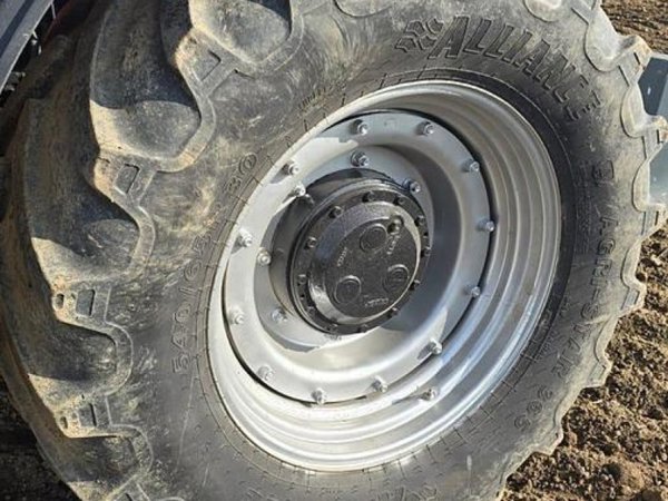 Die Hinterradbereifung ist auf die Anforderungen des Traktors abgestimmt und ermöglicht einen sicheren Einsatz auf verschiedenen Untergründen. Mit den bisher geleisteten 2680 Betriebsstunden liegt der Traktor in einem Bereich, der noch ausreichend Potenzial für weitere Einsatzjahre bietet.