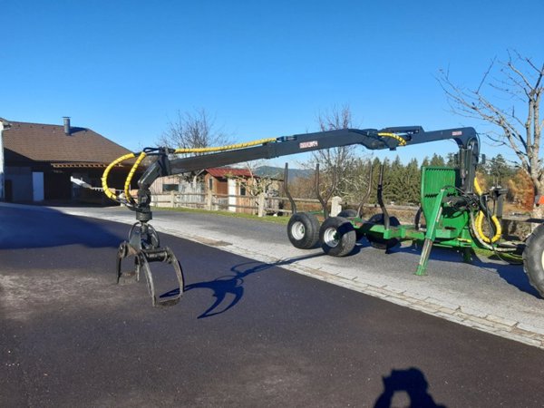privat16.10.2025- Krananhänger mit mechanischem Antrieb über Wegzapfwelle, Differentialsperre, Boggie-Liftachse, 10 m Kran mit Krantilt, Y-Anhängung, Seilwinde am Heck verbaut, Rückfahrkamera, 2 Stk. Ketten, Achse für ÜberstellungsfahrtenBaujahr: 2021