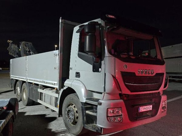 IVECO STRALIS 6X2 BAUSTOFFPRITSCHE MIT HIAB 228-E5 KRAN mit Funkfernsteuerung, Lenk - & Liftachse Technische Daten: * 3-Achser, Diesel * Erstzulassung: 2017 * Eigengewicht: 13.410 kg * HzGG: 26.000 kg * Motortyp: F3HFE611F*J * Höchstgeschwindigkeit: 134 km/h * Leistung: 309 kW * Hubraum: 11120 ccm * Kilometerstand: 252 000 km