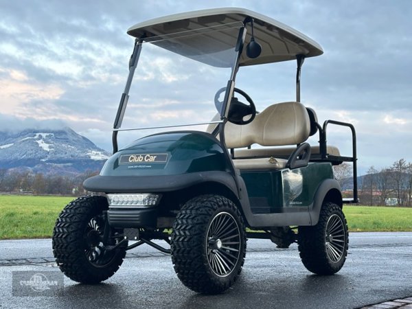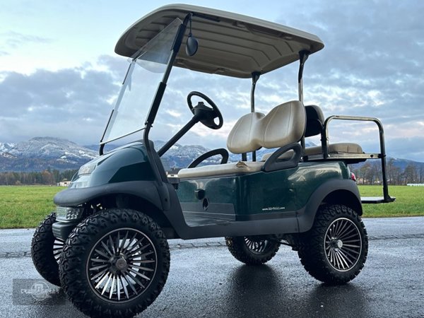 gepflegtes Club Car Precedent Golfwagen in der Farbe Grün mit vielen Extras: ?? Lift Kit für höhere Bodenfreiheit ?? Buggy-Reifen für sicheres Fahren auf jedem Untergrund ?? Spiegel für bessere Sicht ?? gebrauchte Batterien – ?? Beleuchtung für Fahrten bei Dämmerung oder Nacht ?? Praktische Sitzbank hinten, umklappbar zur Ladefläche – ideal für Transport