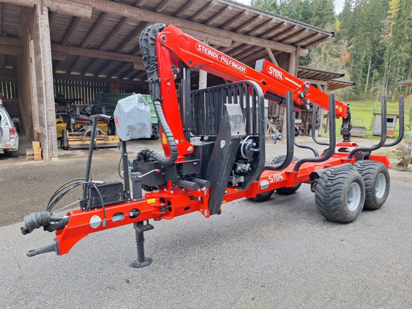 privat16.10.2025- Krananhänger mit mechanischem Antrieb über Wegzapfwelle, Differentialsperre, Boggie-Liftachse, 10 m Kran mit Krantilt, Y-Anhängung, Seilwinde am Heck verbaut, Rückfahrkamera, 2 Stk. Ketten, Achse für ÜberstellungsfahrtenBaujahr: 2021