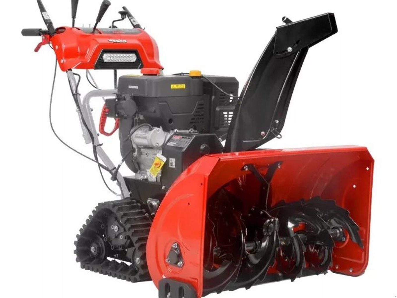 Abgerundet wird die Fräse mit einer Griffheizung und – vor allem für die dunkle Jahreszeit nützlich – einer zuschaltbaren LED-Leuchte. Die Raupenkette aus Gummi ist mit einem Grobstollenprofil ausgestattet und ermöglicht die Anwendung auch bei den schwierigsten Witterungsverhältnissen.