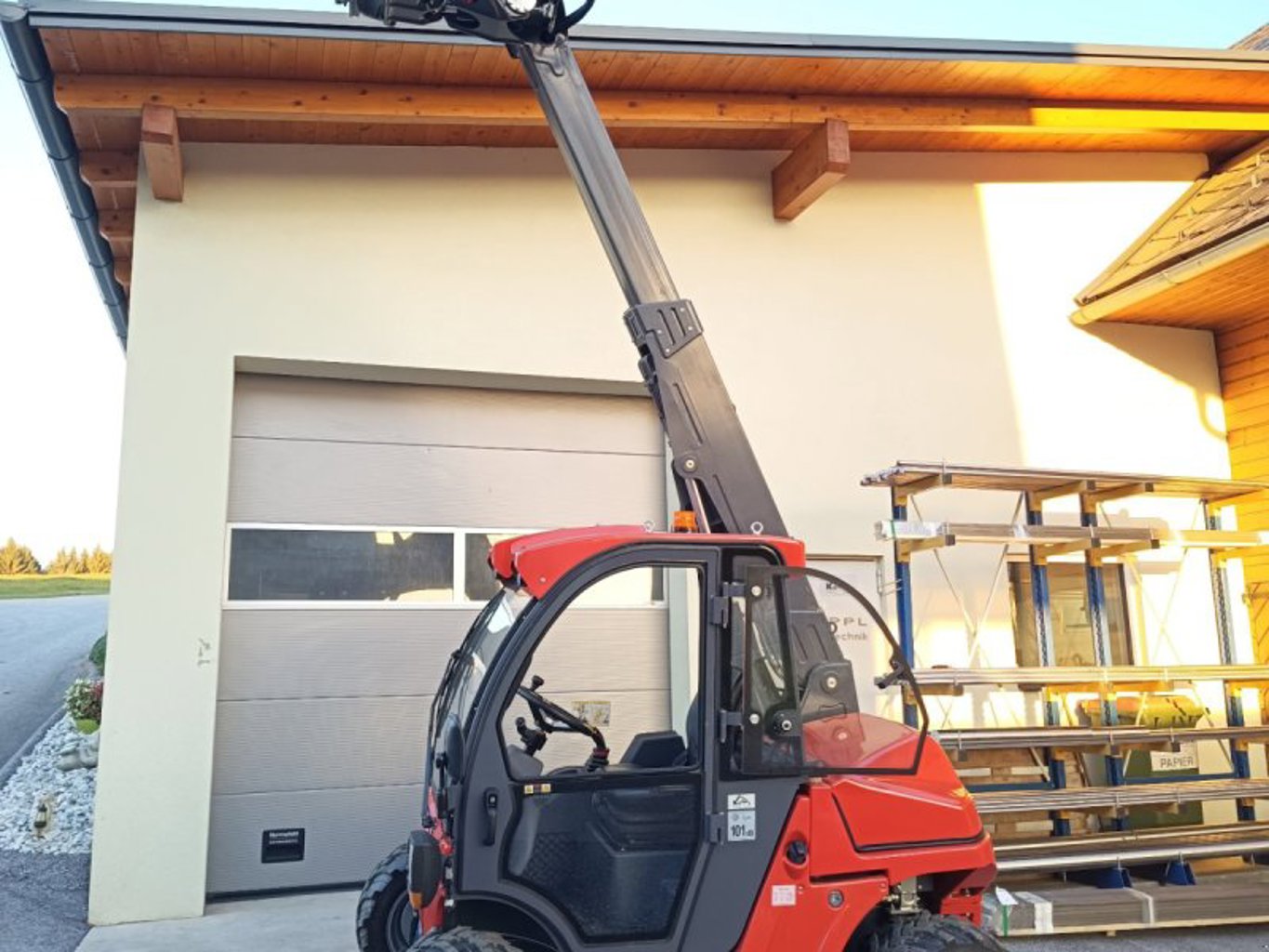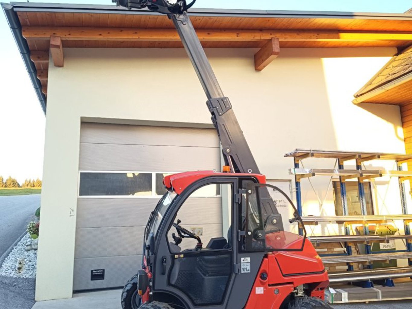 Kompakter wendiger Teleskoplader, die Alternative zum klassischen Hoflader mit 4 m Hubhöhe, Hubkraft 1,5 t, geschlossene Kabine mit Heizung, Allrad, Differenzialsperre, Euro-Aufnahme mit hydr. Schnellwechsler, gefederter Sitz, Inch-Pedal, alle Funktionen am Joystick, umgebaut auf Euroaufnahme mit hydr. Seitenschieber wie bei einem Stapler, sehr praktisch beim Palettenhandling, verfügbar in ca. 2 Wochen.