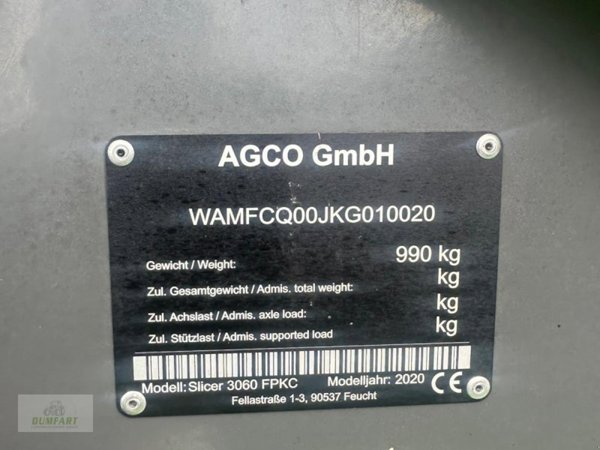 zu Verkauf steht ein neuwertiges Frontmähwerk Fendt Slicer 3060FPKC mit Aufbereiter, hydr. Schwadtuchschwenkung, sofort Verfügbar