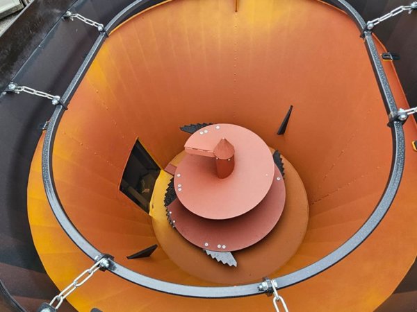 Mischbehälter, eine Schnecke, stationärer Unterbau