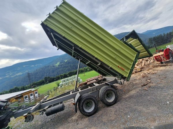 Die Außenmaße ohne Deichsel betragen 5,26 x 2,29 x 2,36 Meter. Der Kipper wurde wenig gebraucht und weist insgesamt einen guten Allgemeinzustand auf.
