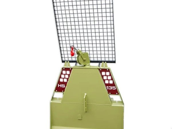 Die HS 135 verfügt über einen einziehbaren Stützfuß, der für Stabilität auf unebenem Gelände sorgt, sowie einen seitlichen Zapfwellenanschluss für eine einfache Integration in den Traktor. Das Schutzgitter bietet Sicherheit vor herabfallenden Objekten, während die leichtgängige Kupplungsbetätigung durch Bartonblöcke das Handling erleichtert.