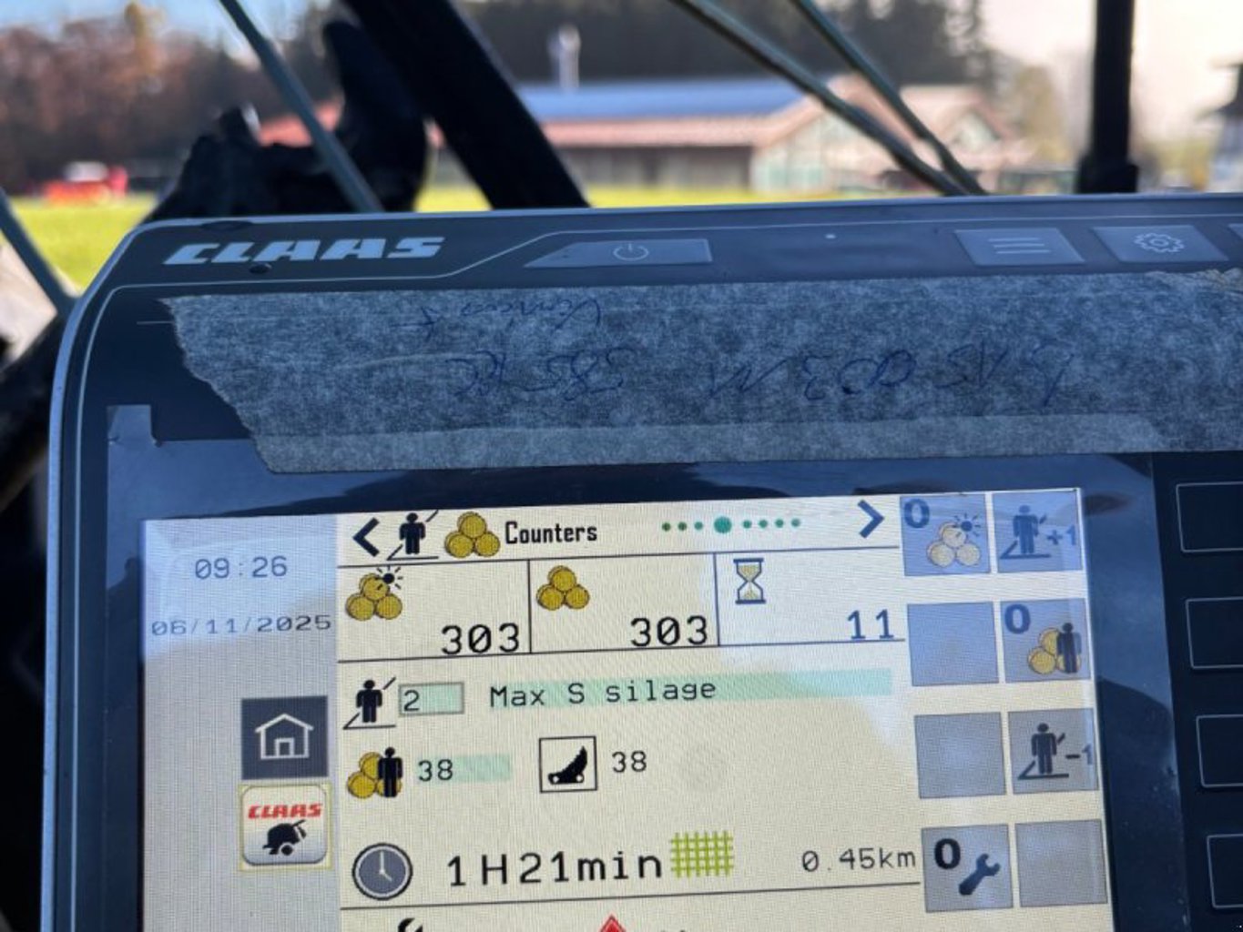 Die Ballenanzahl kann variieren, da die Presse bis zum Verkauf genutzt wird.Schneidwerk