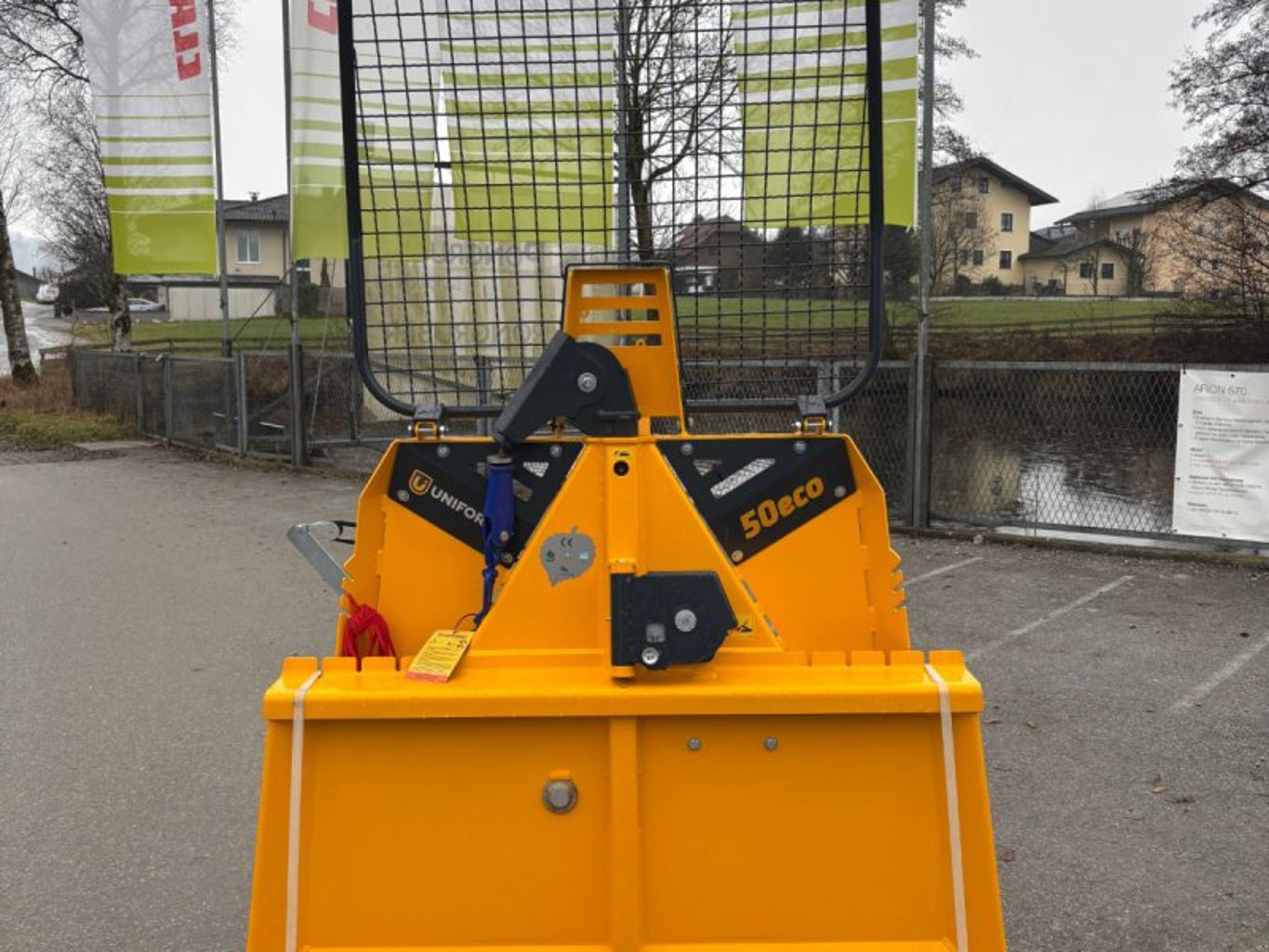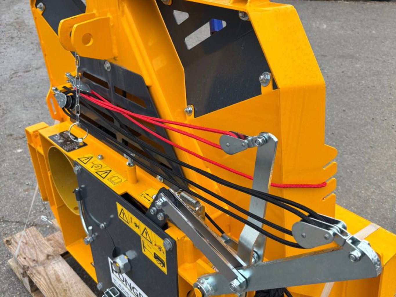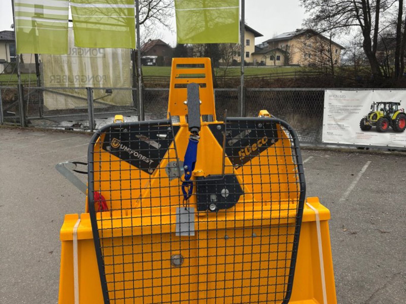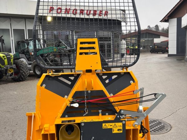 Die Holzknecht HS 150 ist mit einer Reihe von Funktionen ausgestattet, die die Arbeit erleichtern und die Sicherheit erhöhen. Ein einziehbarer Stützfuß sorgt für Stabilität auf unebenem Gelände, während ein seitlicher Zapfwellenanschluss die Integration in den Traktor vereinfacht. Das Schutzgitter bietet Schutz vor herabfallenden Objekten und erhöht die Sicherheit während des Betriebs.
