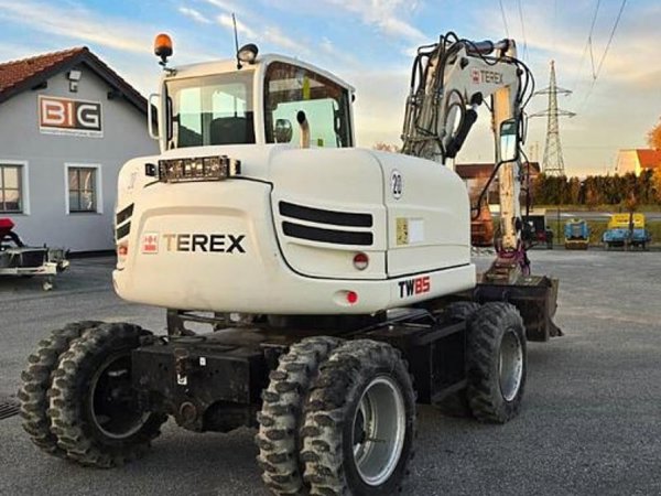 TEREX TW85 HYDRAULIKBAGGER Technische Daten: * Baujahr: 2012 * Zul. Gesamtgewicht: 10.000 kg * Zul. Vorder-Achslast: 6.000 kg * Zul. Hinter-Achslast: 6.000 kg * Motorleistung: 67 kW * Hubraum: 3.192 l * Höchstgeschwindigkeit: 20 km/h Maße: * Länge: 660 cm * Breite: 245 cm * Höhe: 395 cm * Gewicht: 9090 kg Zubehör: * 2x Winkelbauer Tieflöffel * 1x Winkelbauer Böschungslöffel * 1x Schnellwechsler * 1x Planierschild