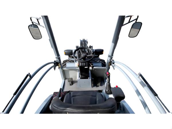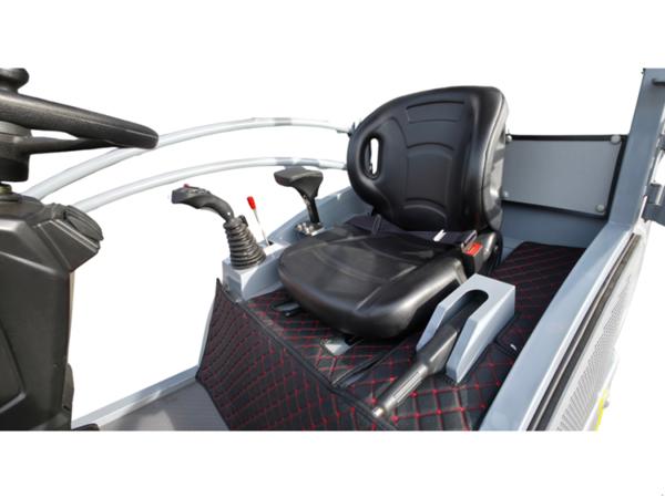 Auch in puncto Sicherheit und Komfort überzeugt der Hoflader. Der verstellbare, ergonomisch gestaltete Fahrersitz ermöglicht ermüdungsfreies Arbeiten, während logisch angeordnete Bedienelemente eine intuitive Steuerung gewährleisten. Für gute Sichtverhältnisse bei schlechten Lichtbedingungen ist der OX625 serienmäßig mit LED-Arbeitsleuchten vorne ausgestattet. Ein Rückspiegel erweitert das Sichtfeld und erhöht die Sicherheit im Arbeitsalltag. Zusätzlich sorgt die elektrische Feststellbremse mit Haltefunktion für sicheres Abstellen der Maschine, selbst auf Gefälle.