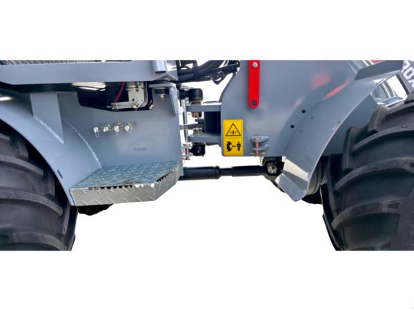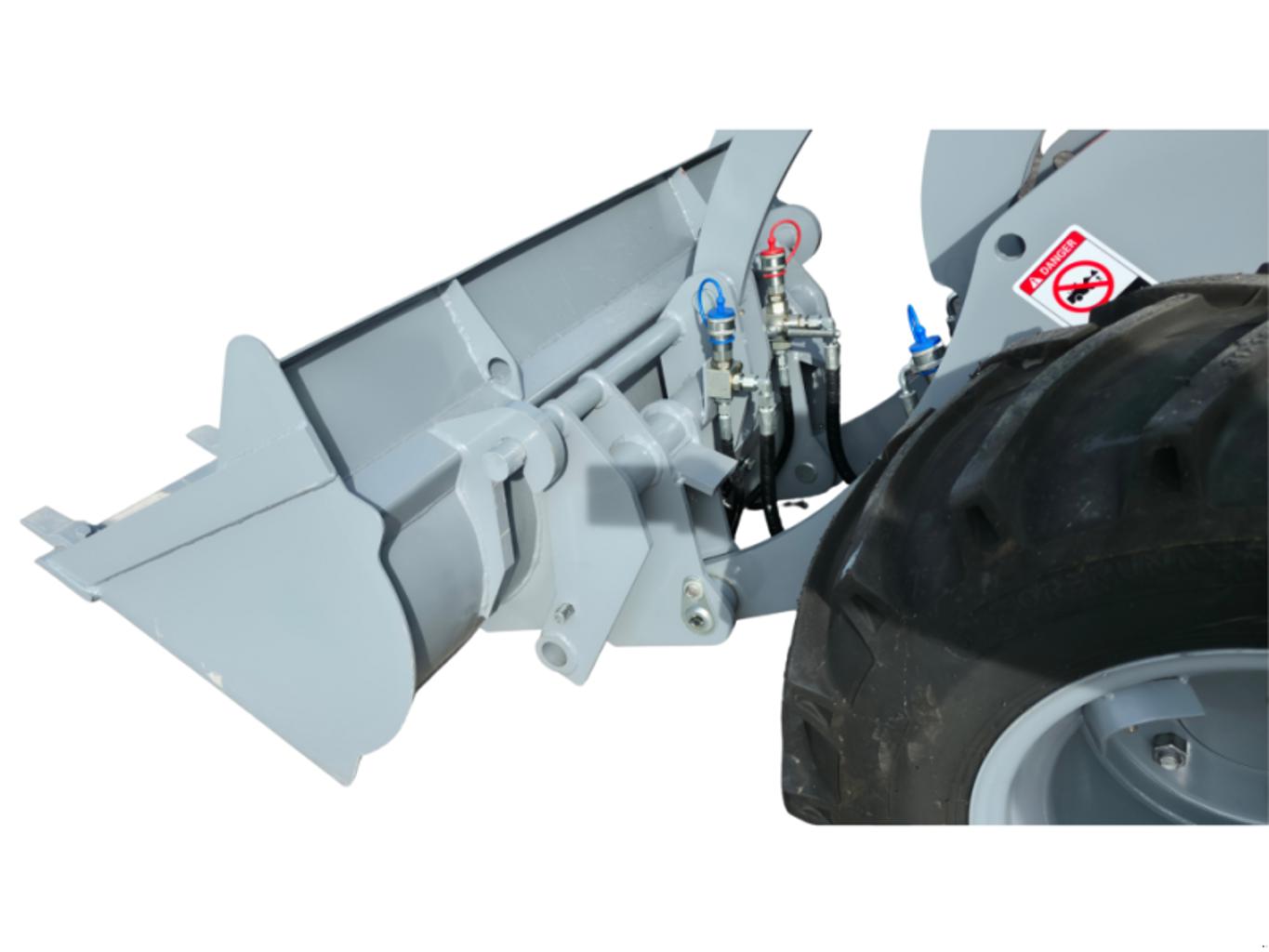 Der hydraulische Schnellwechselrahmen mit Euro-Aufnahme und zusätzlichem Steuerkreis erlaubt den flexiblen Einsatz verschiedenster Anbaugeräte wie Palettengabel, Schneeschild, Silagezange oder Kehrmaschine. Hydraulische Geräteverriegelung, verstärkter Hubzylinder und Differentialsperre unterstützen sicheres Arbeiten auch bei hoher Belastung.
