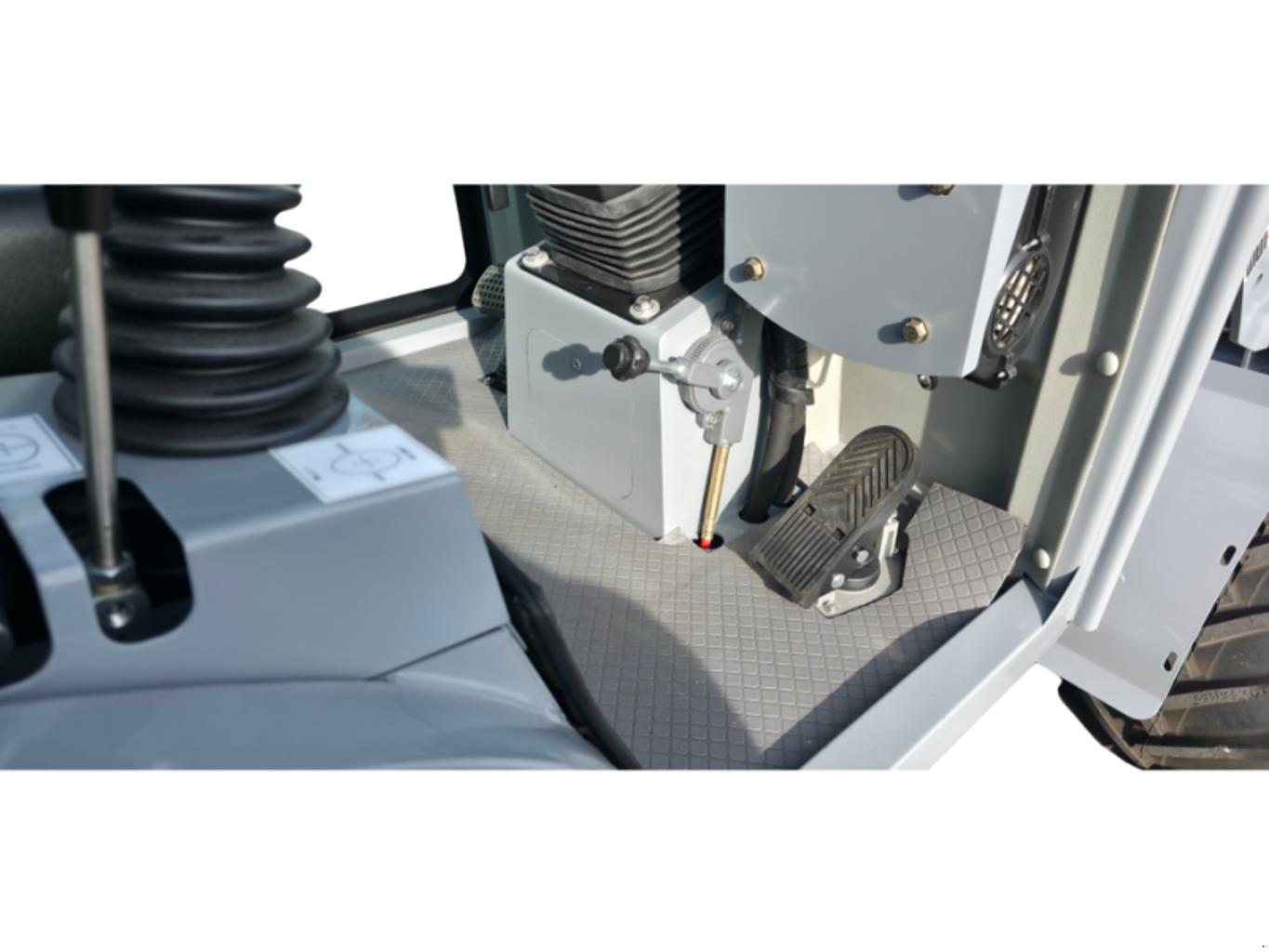 Der wassergekühlte 3-Zylinder-Dieselmotor vom Typ Kubota D1105 erfüllt die Euro-5- / EPA4-Norm und bietet eine ausgewogene Kombination aus Leistung, Laufruhe und Wirtschaftlichkeit. Der stufenlose, hydrostatische Antrieb ermöglicht feinfühliges Rangieren und zuverlässige Kontrolle auch bei wechselnden Untergründen. LED-Beleuchtung, Canopy-Schutzaufbau und verstellbares Lenkrad sorgen für gute Arbeitsbedingungen und hohen Bedienkomfort.