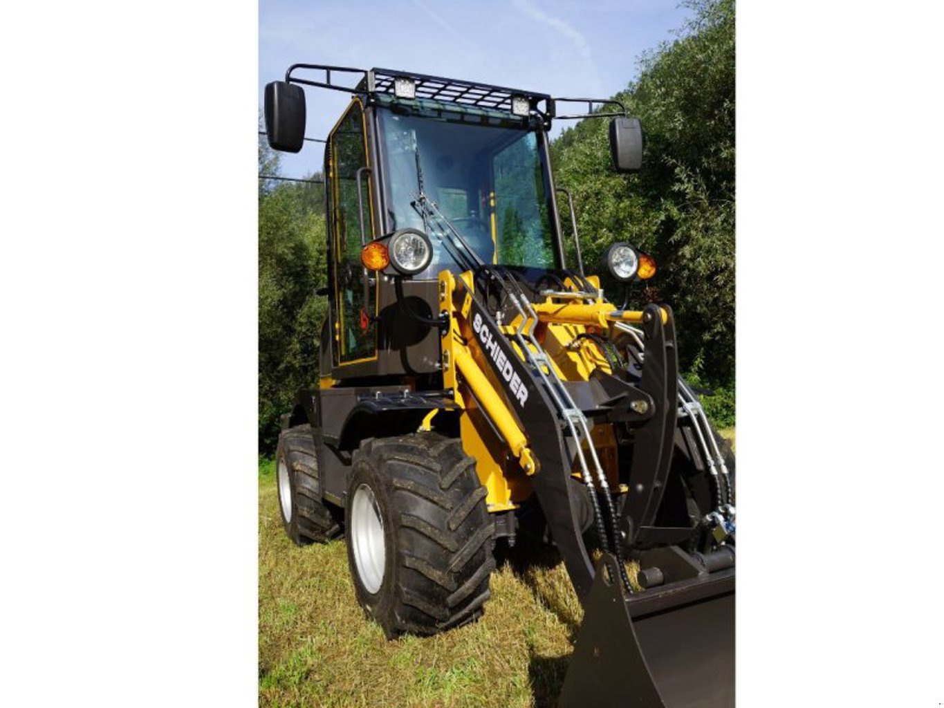 optionale Sonderausstattung: Extra breite Agrarbereifung 31×15.5-15, Schnellkupplung, elektr. Joystick, 4. Hydraulikkreis, Rückfahrkamera, Euro 1 Aufnahme, Klimaanlage uvm.