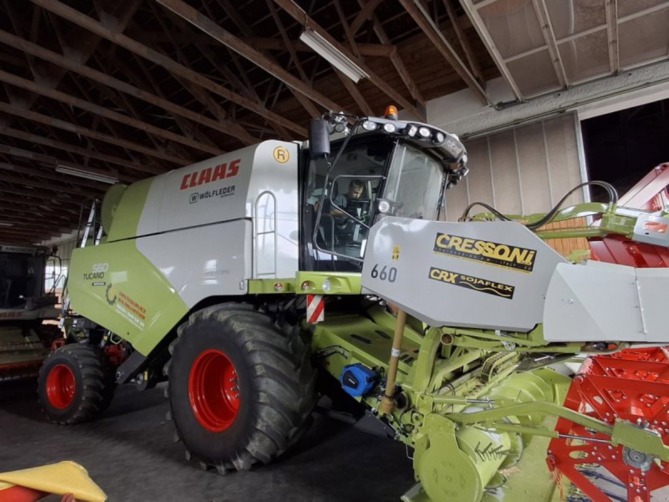 Claas Tucano 560 Montana, ROTO Plus Rotorvariator, 2 Stufenregeltrieb U/min einsch. SWTA, 3D Reinigung, Siebeinstellung el., Windreduzierung für Grassamendrusch, Korntank l Obenentleerung HD, Korntankauslaufrohr lang axial HD, Korntankentleerung XL, SPECIAL CUT Strohhäcksler und Spreuverteiler, Triebachsbereifung 900/60 R32 181 A8, 10-Loch Michelin, Differentialsperre, Lenktriebsachse einstellbar (10-Loch), 600/45 R26,5 , Mercedes OM936LA, 260 kW/354 PS, Kühlschrank für Staubox L, Heckkamera mit CEBIS Anzeige, PROFI CAM, Monitor für PROFI CAM, ACTIMO EVOLUTION Premiumsitz, Arbeitsbeleuchtung LED, AUTO CROP FLOW, AUTO SLOPE, ohne Schneidwerk.