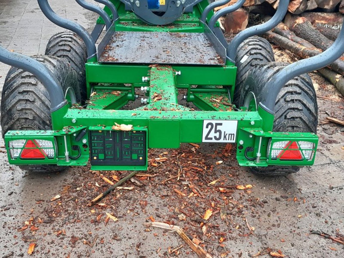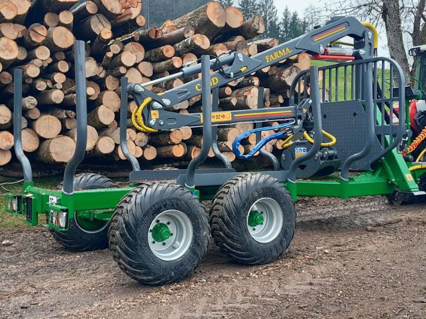400/60 15,5 Forstbereifung, Stehpodest mit Kreuzhebelsteuerung höhenverstellbar, 1 oder 2 Achsen Trommelgebremst mit oder ohne Winde, vom Stehpodest und feinfühliger Eurodrehhebelbedienung bis zur Funkfernsteuerung ist alles möglich.