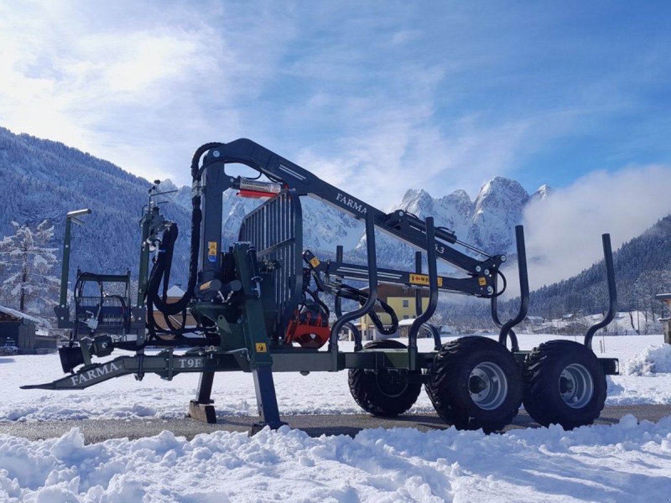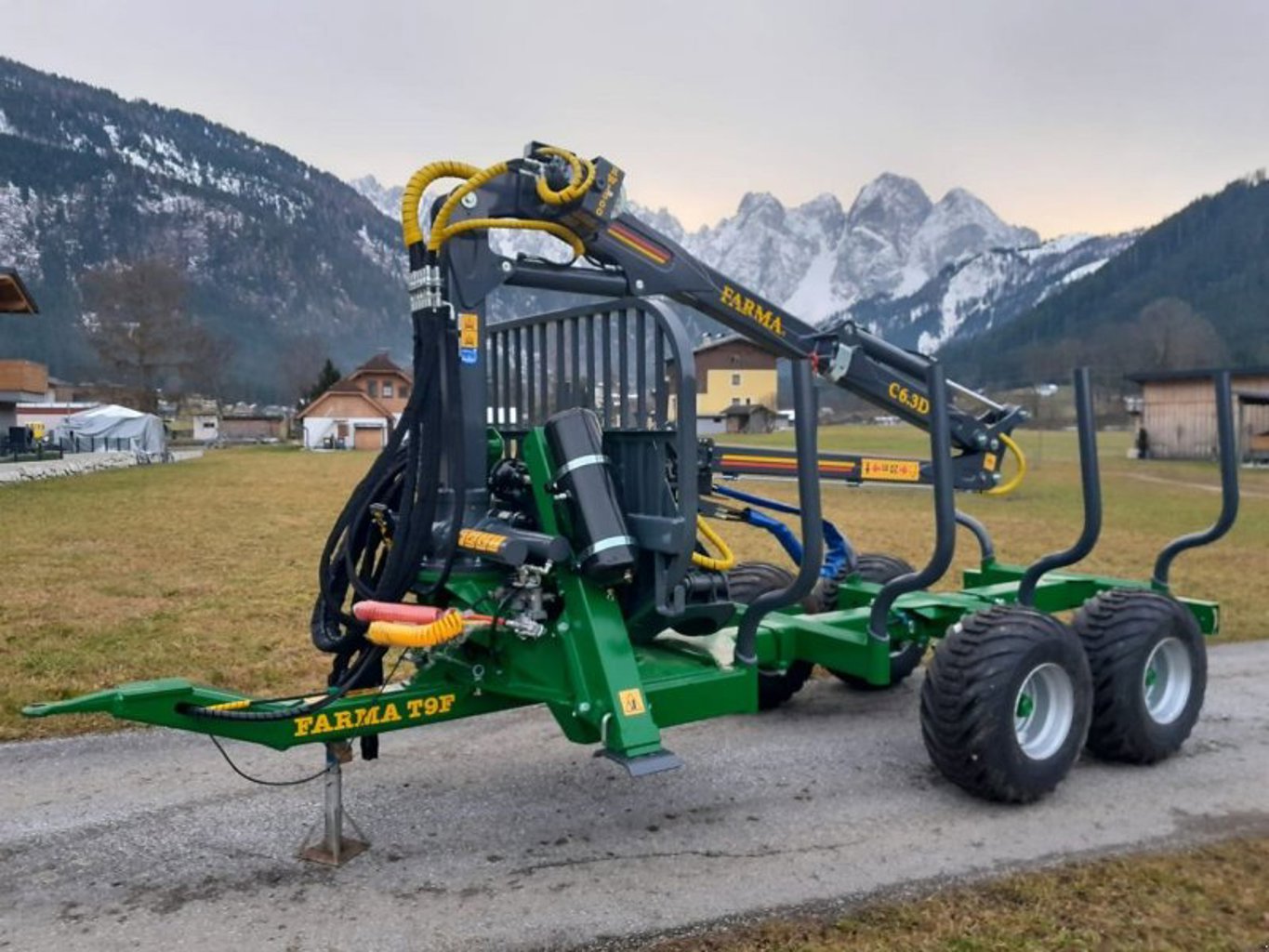 Farma CT 6,3-9F mit starkem Doppelrohrrahmen im Kranbereich.