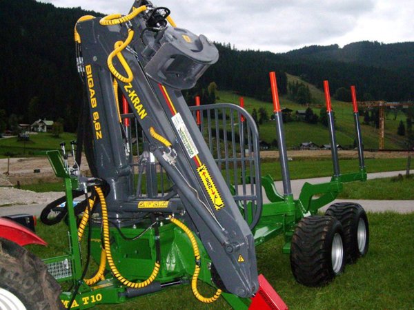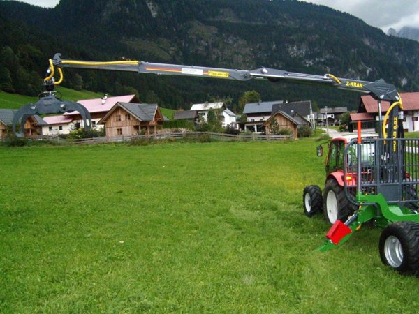Der Bigab Z-Kran eignet sich durch sein geringes Eigengewicht von rund 1000kg für den Aufbau auf verschiedensten Fahrzeugen, von Forstanhänger, Kipper über Traktore bis hin zu Geräteträger wie Muli usw. ist alles möglich.