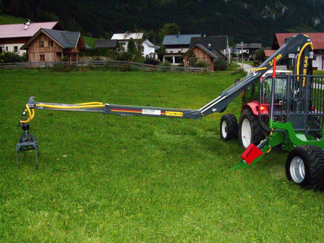 Der Bigab Z-Kran (Farma) eignet sich durch sein geringes Eigengewicht von rund 1000kg für den Aufbau auf verschiedensten Fahrzeugen, von Forstanhänger, Kipper über Traktore bis hin zu Geräteträger wie Muli usw. ist alles möglich.