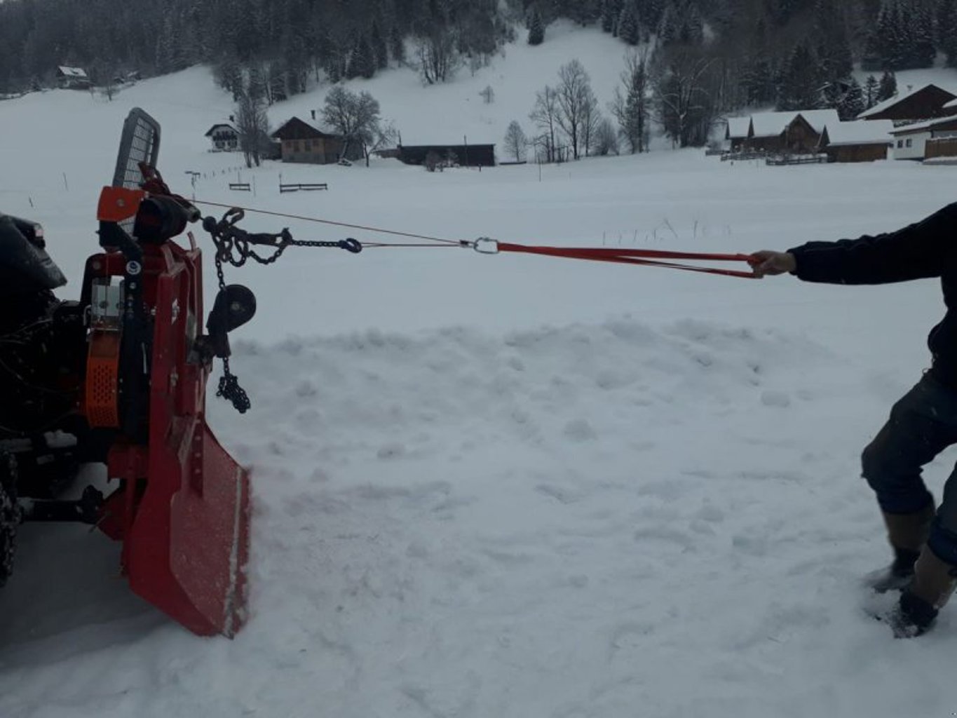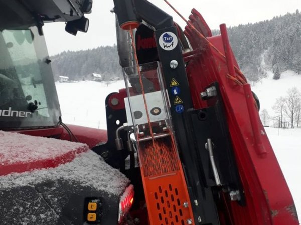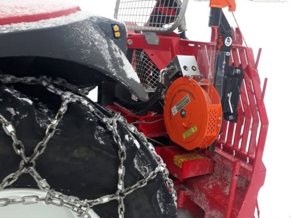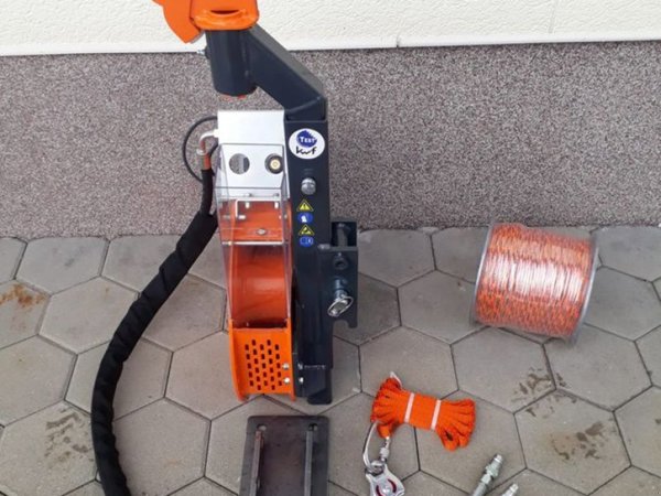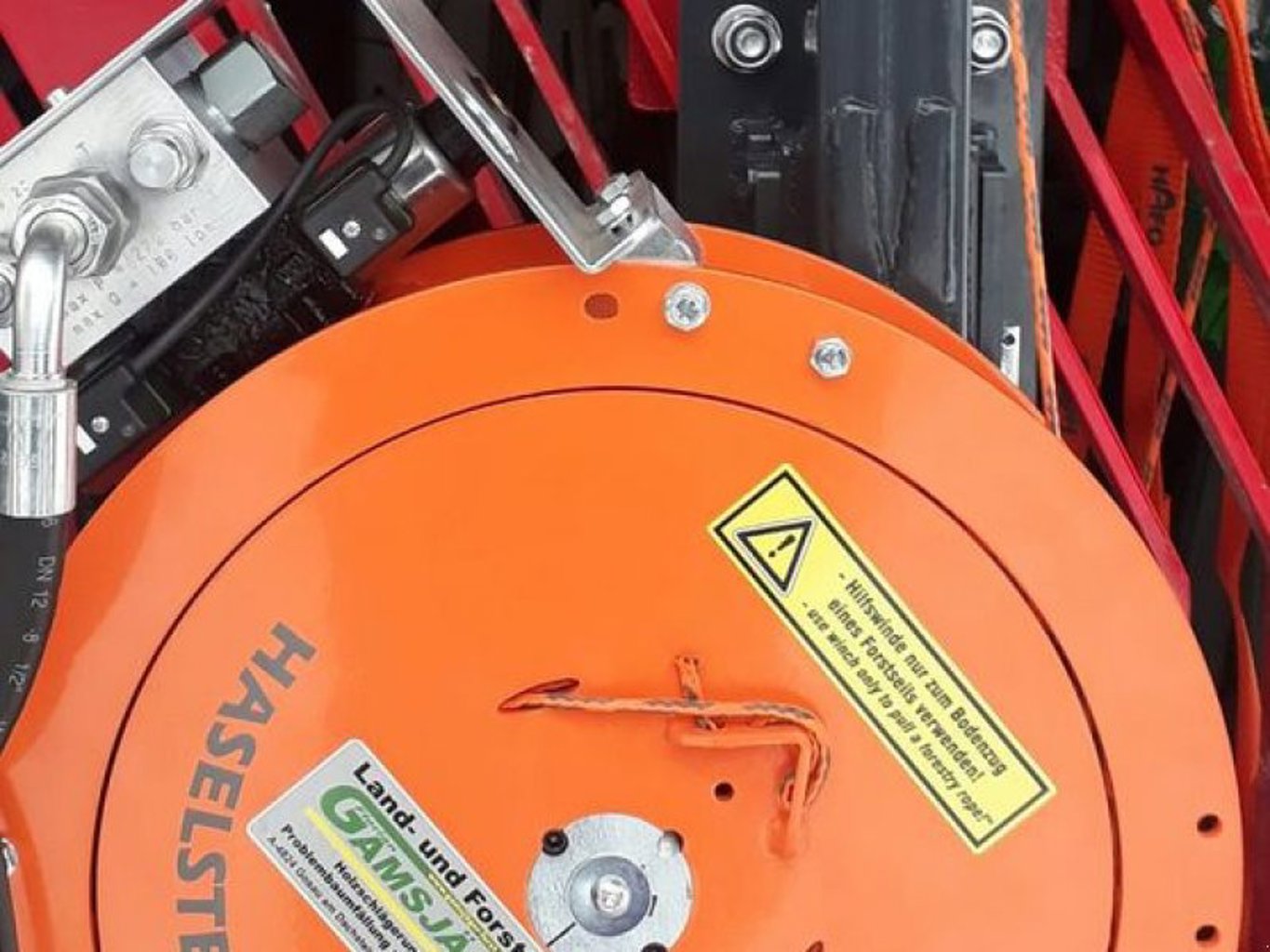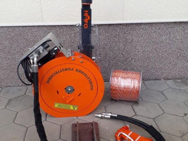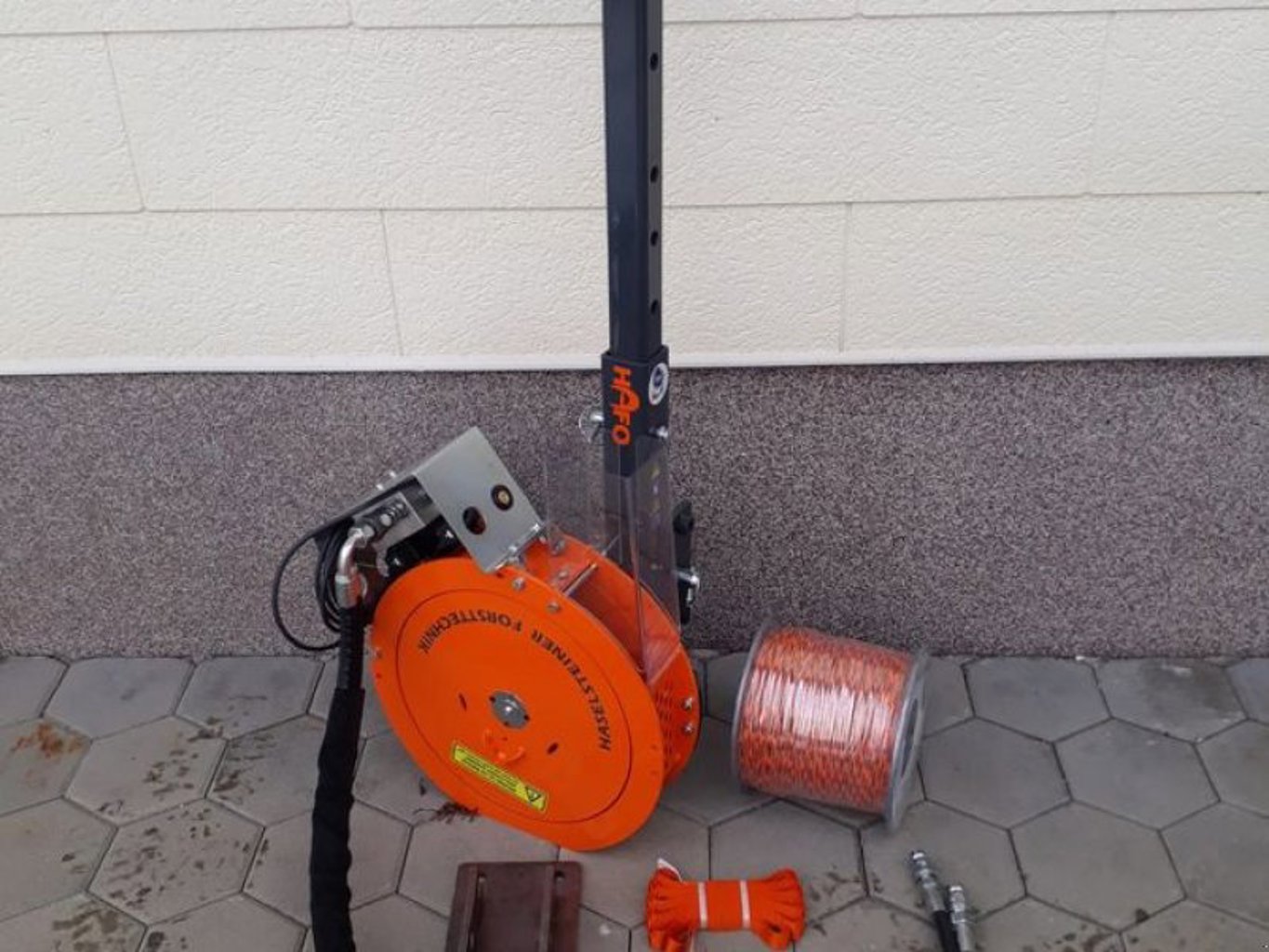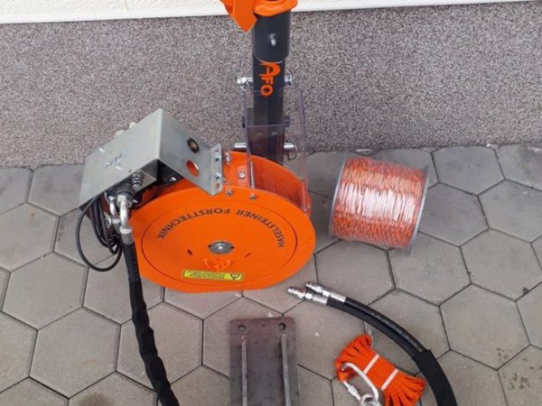 Die hydraulische Hilfsseilwinde wird zum Anbau z.B. an Seilwinden eingesetzt um das schwere Windenseil mit Ketten oder Seilschlingen zum Schlägerungsort zu ziehen. Die Seileinlaufrolle ist natürlich 360° zu jeder Zugrichtung drehbar.