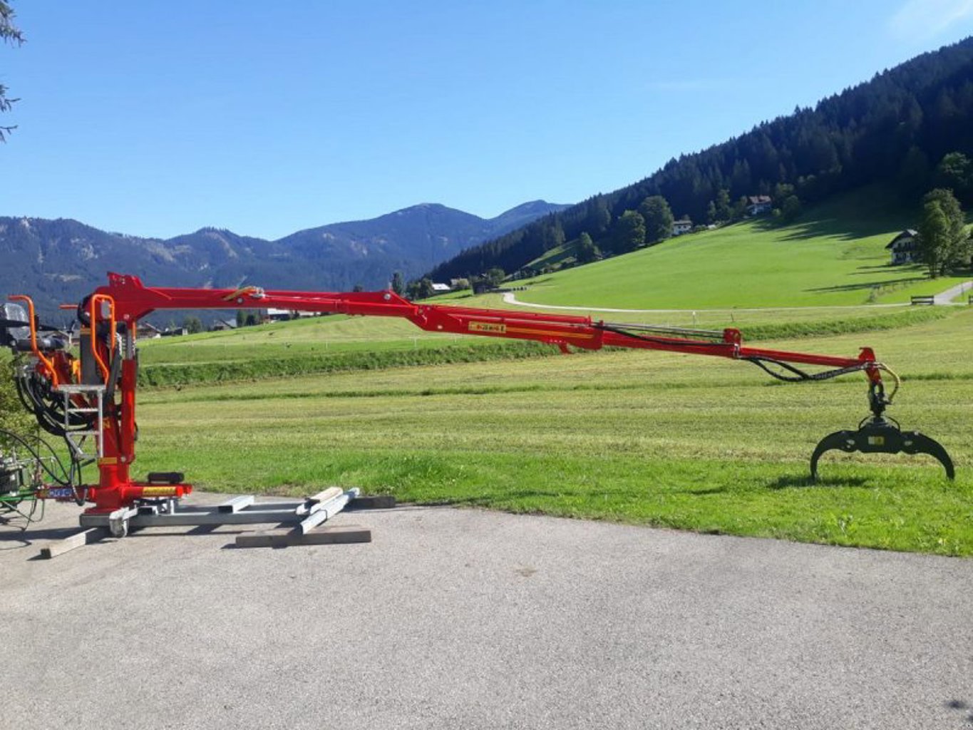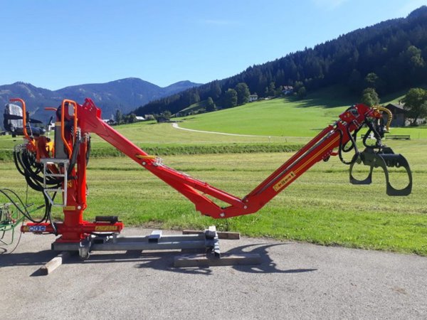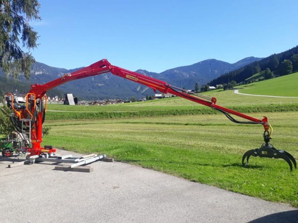 Der Bigab Z-Kran eignet sich durch sein geringes Eigengewicht von rund 1000kg für den Aufbau auf verschiedensten Fahrzeugen, von Forstanhänger, Kipper über Traktore bis hin zu Geräteträger wie Muli usw. ist alles möglich.