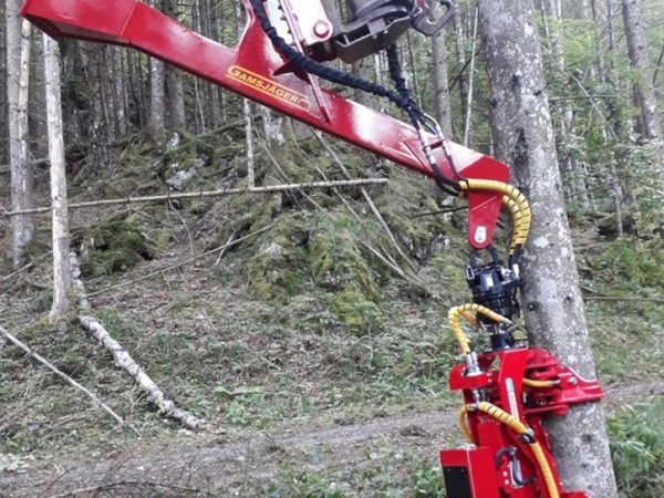 Grundsätzlich für die Aufnahme des Naarva S23C Gamsjäger Edition Schubharvesters konstruiert. Natürlich können beliebige andere Anbaugeräte wie z.B. ein Fällkopf oder eine Holzzange angebaut werden.
