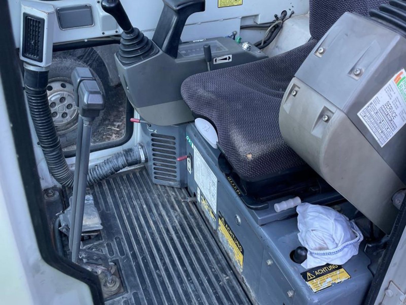 Minibagger Takeuchi TB016 inkl. mechanischem Schnellwechsler, schwenkbarem Böschungslöffel, 30er Zahnlöffel, Hammerleitung mit Schnellkupplungen, 2x LED-Arbeitsscheinwerfer, Radio, Heizung. Guter Zustand, sofort einsatzbereit. Aufnahme: Martin M03. Bstd.: 2.935.