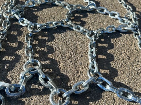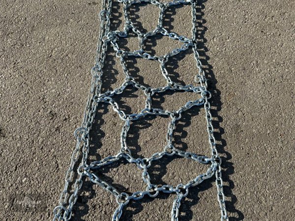 Die Netzkette ist mit Überwurfgliedern ausgestattet, was zusätzliche Sicherheit und Stabilität während der Fahrt gewährleistet. Die Ausführung für die Reifengröße 600/60R28 mit einer Breite von 0,6 Metern macht sie zur perfekten Wahl für entsprechende Traktoren und Spezialfahrzeuge.