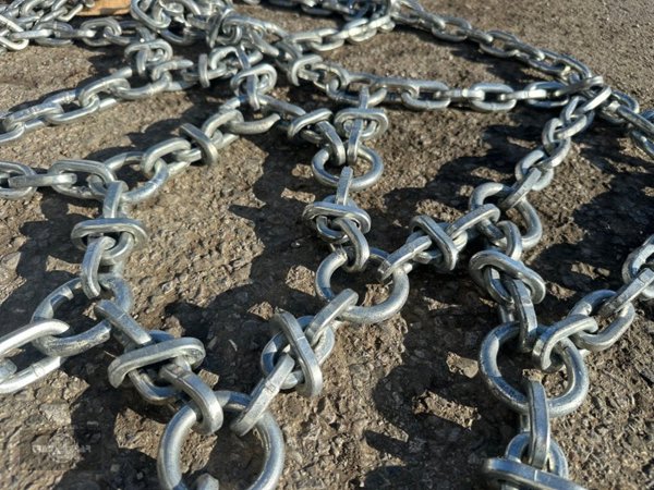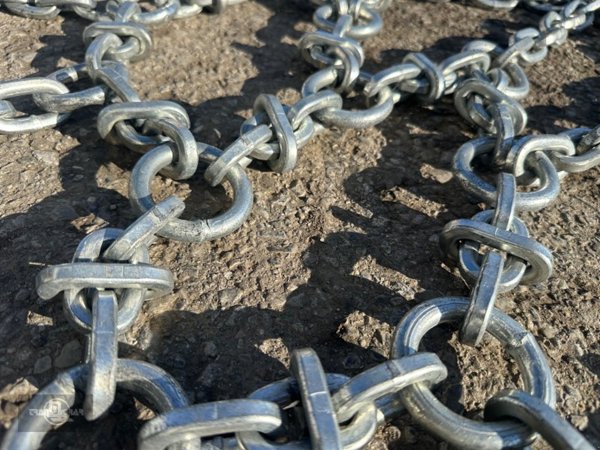 Die Netzkette ist mit Überwurfgliedern ausgestattet, was zusätzliche Sicherheit und Stabilität während der Fahrt gewährleistet. Die Ausführung für die Reifengröße 600/60R28 mit einer Breite von 0,6 Metern macht sie zur perfekten Wahl für entsprechende Traktoren und Spezialfahrzeuge.