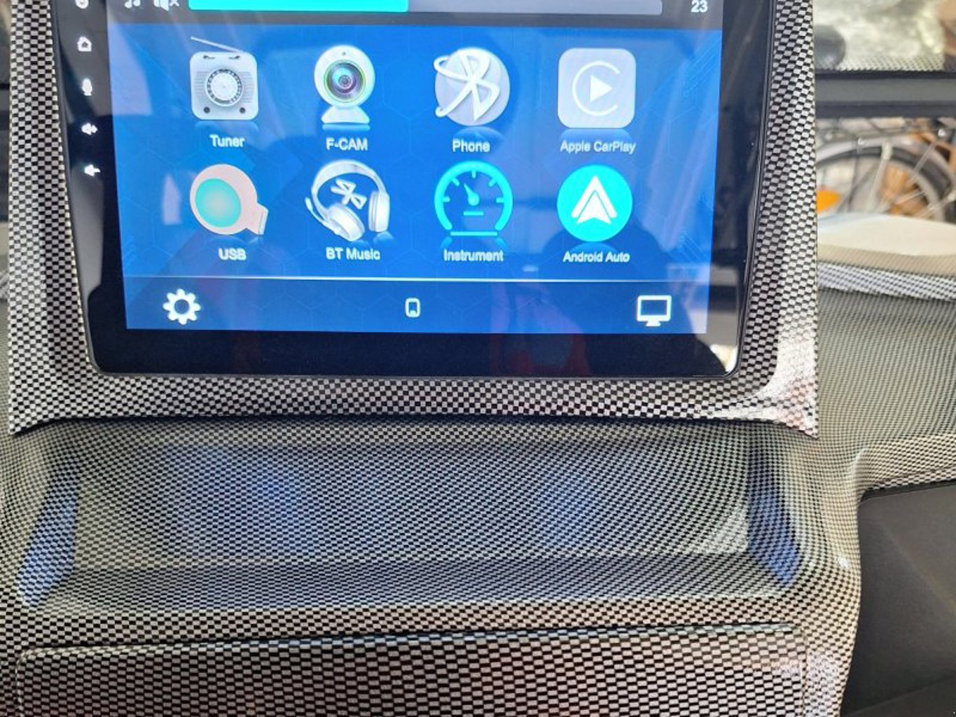 • 10“ Touchscreen / Bildschirm mit Bluetooth-Soundsystem, Telefonfreisprechanlage, WhatsApp, usw. 1 x USB Anschluss