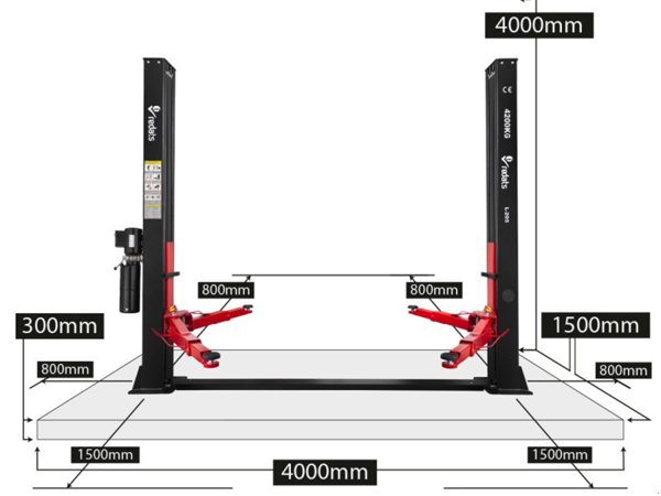 Die hydraulische 2-Säulen-Hebebühne REDATS L-205F mit einer Hubkapazität von 4,2 Tonnen und manueller Entriegelung ist eine großartige Option für alle Hobby-Werkstätten.