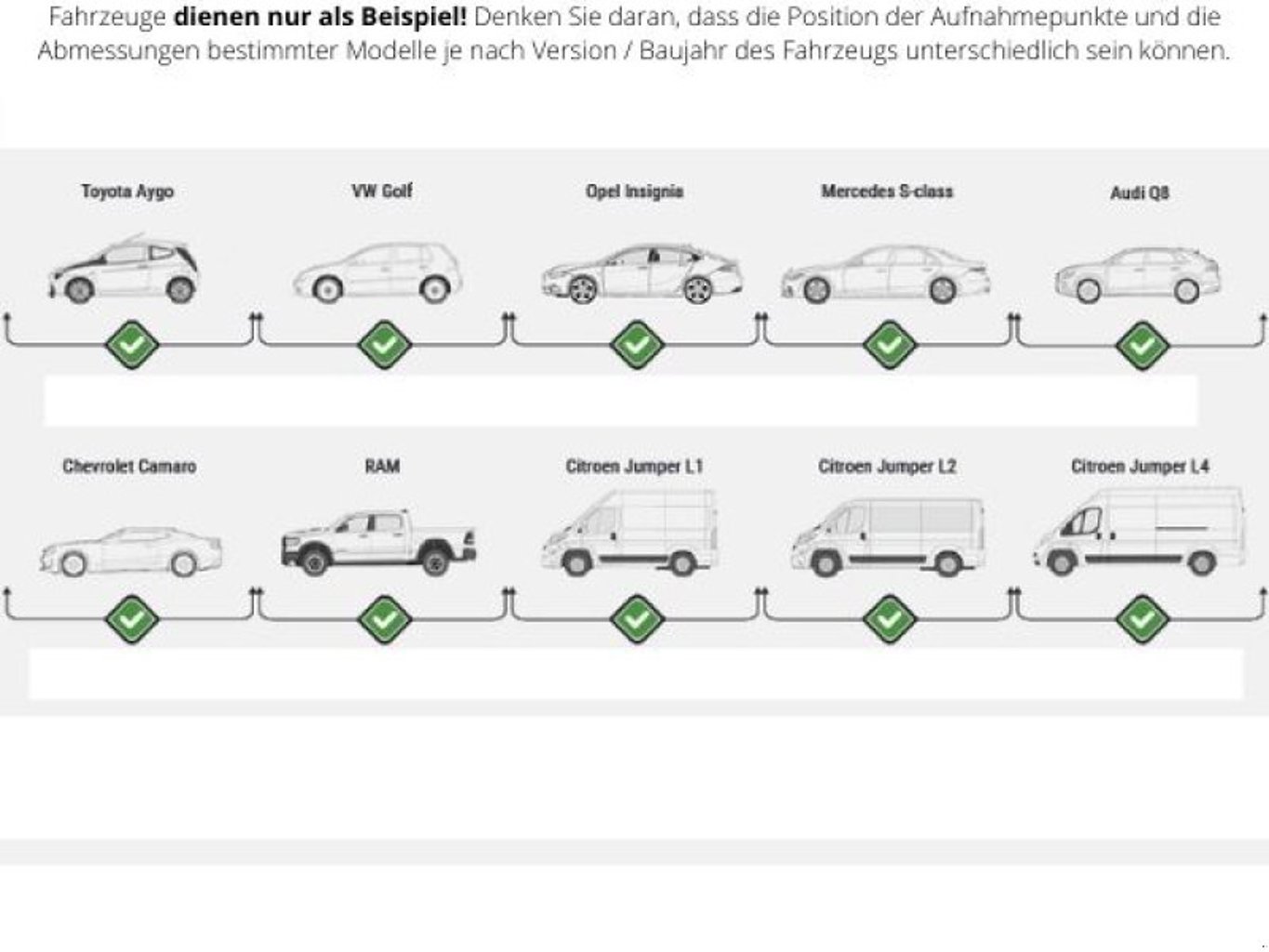Zum Heben von PKW, als auch Transportern mit kurzem Radstand