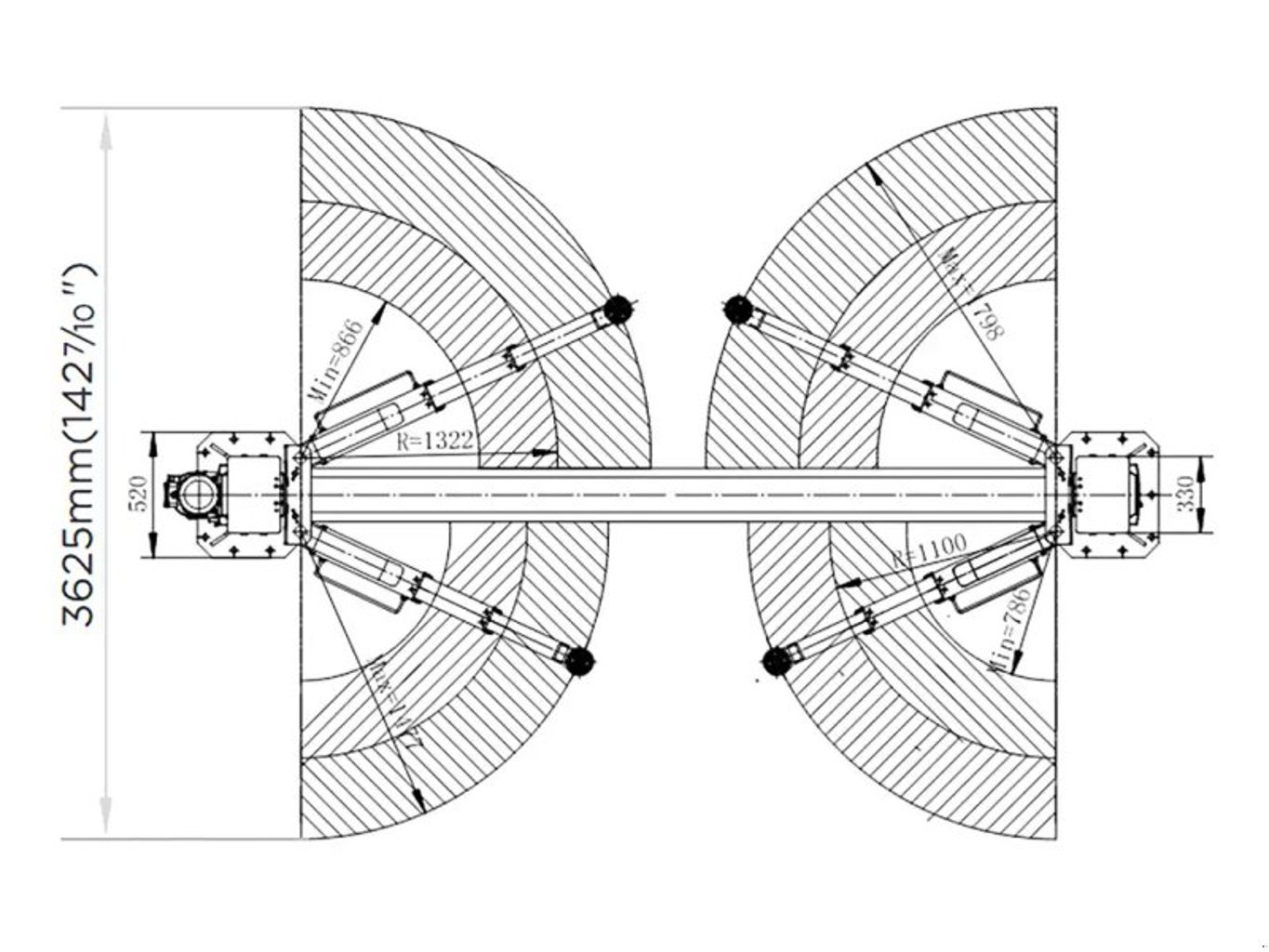 Unterschied zur L-220: Die symmetrischen 3-teiligen Arme mit einer Länge von 700 mm bis 1.345 mm