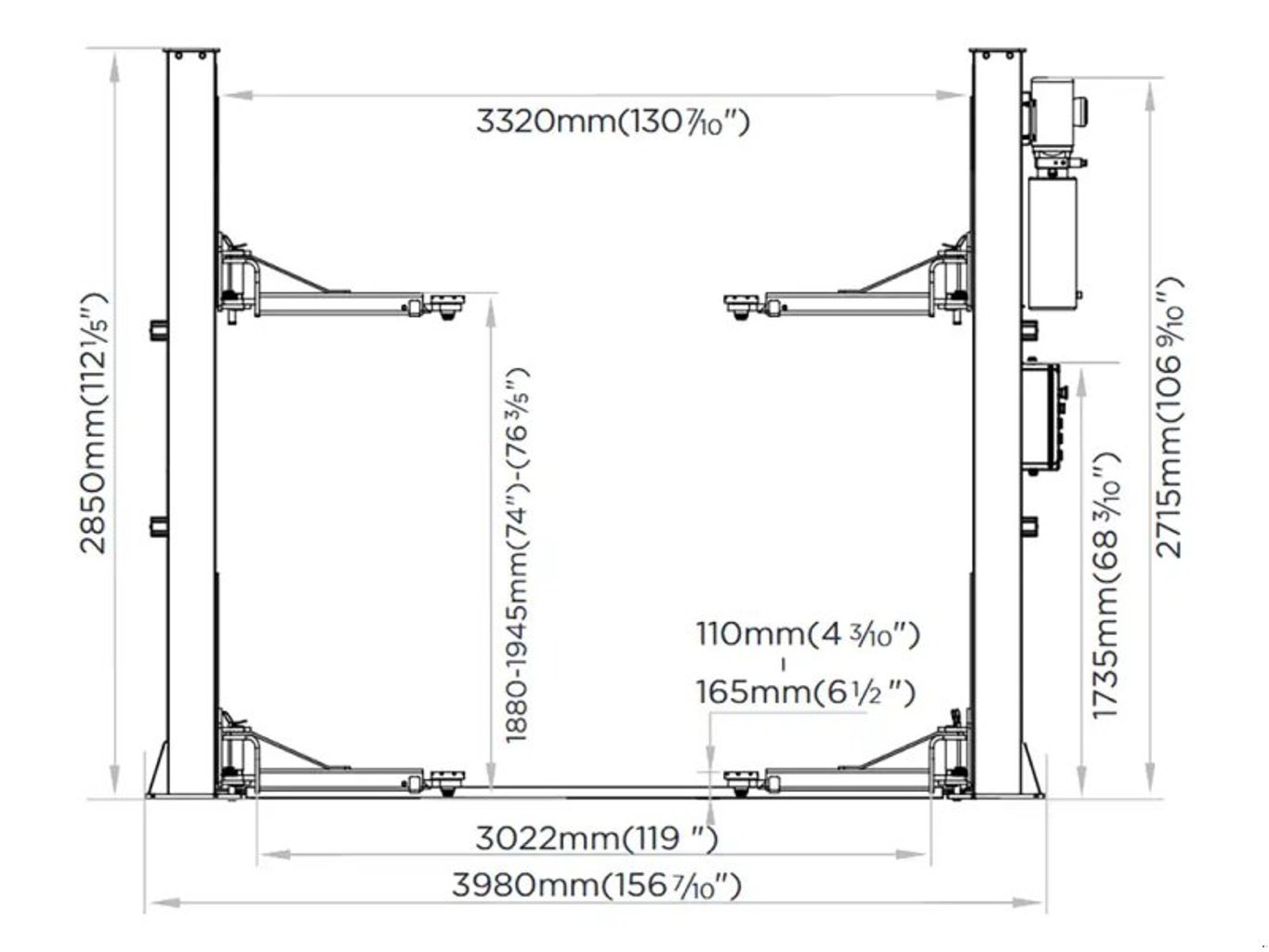 Der asymmetrische Aufbau ermöglicht einen optimalen Türöffnungsspielraum für PKWs mit niedrigen Türpositionen, während der symmetrische Aufbau mehr Platz zwischen den Säulen für breitere Fahrzeuge bietet, hier können Sie zwischen 2872 mm und 3016 mm Durchfahrbreite wählen.