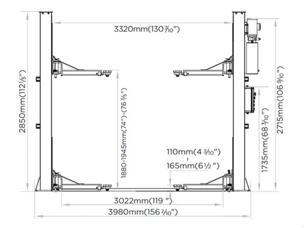Eigengewicht: 685 kgGrundlegende Anforderungen an die Vorbereitung des Bodens für den Einbau einer Zwei-Säulen-Hebebühne: