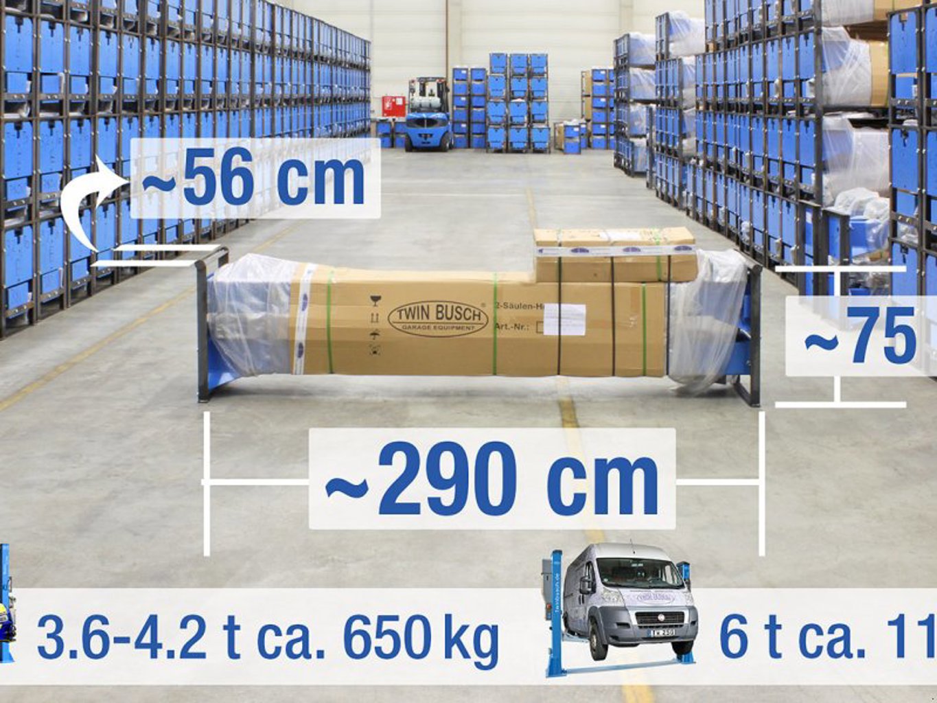 – Mit der L-205F können Fahrzeuge mit einer max. Breite von 2616 mm gehoben werden (zuvor 2500mm).