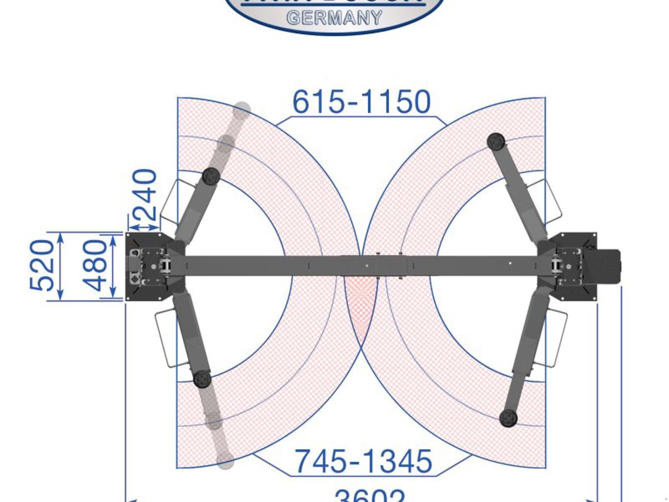 Tragarmlänge / kurz (ca.): 615 – 1150 mm